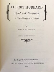 Previous post: Rebel with Reverence, Elbert Hubbard Granddaughter’s Tribute, W W Denslow Cover, Roycroft History