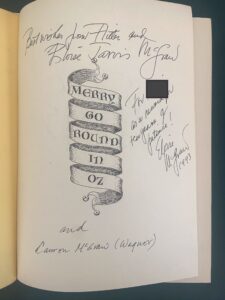 Home / Shop / Wizard of Oz Books / Sold. SIGNED Merry Go Round in Oz Book 1st Edn in Jacket, Eloise McGraw Wizard of Oz 1963 / MerryGoRoundSigned3 copy