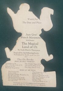 Home / Shop / Oz Ephemera & Sheet Music / Rare Jean Gros Marionette Scarecrow Magical Land of Oz Bookmark ca. 1928 John R Neill / JeanGrosBookmarkScarecrow2