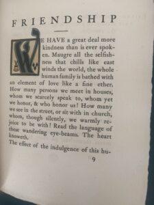 Home / Shop / Roycroft - Roycrofters / 1899 Thoreau Essay on FRIENDSHIP Illumined Denslow Initials Roycroft Roycrofters / RoycroftFriendship4