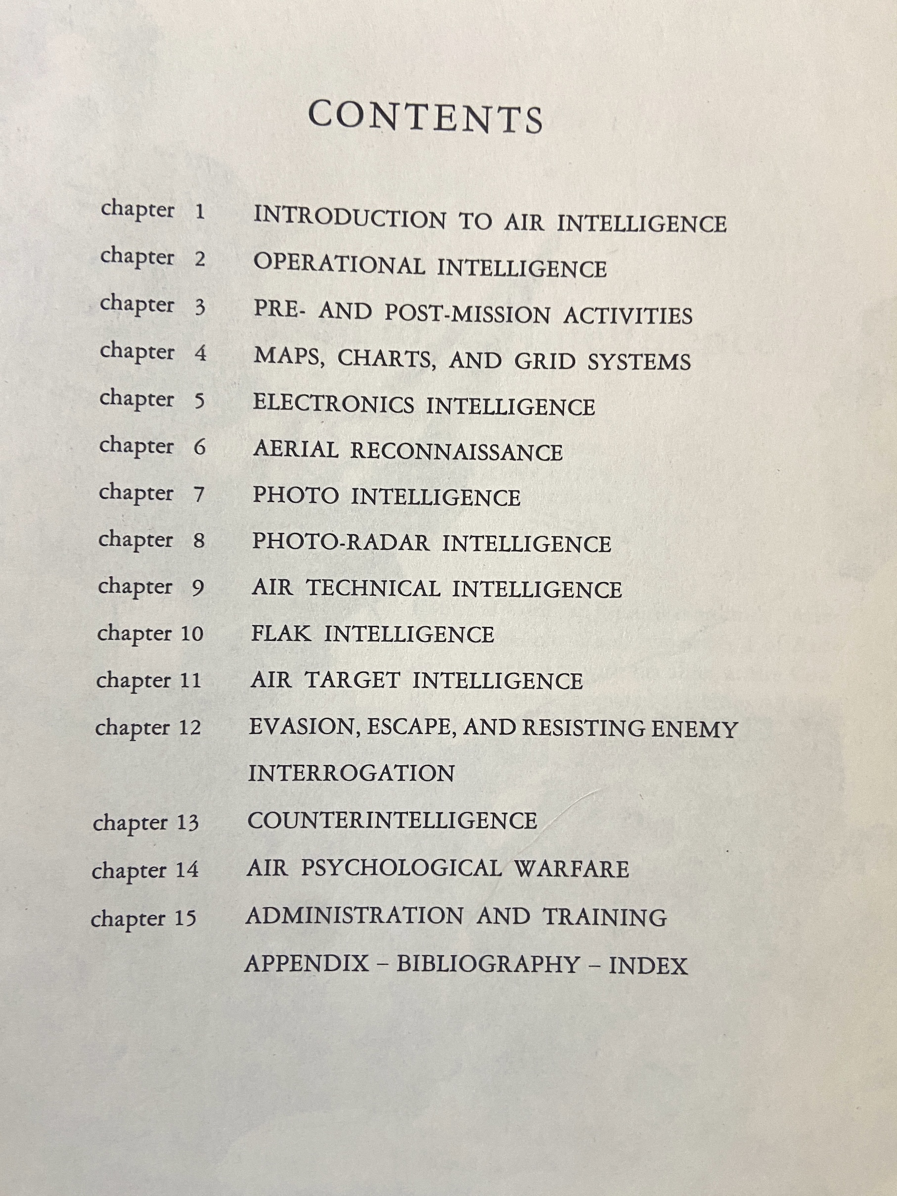 Handbook of Air Intelligence, Air Force Manual 200-3, May 1953, Revised Nov 1954. 13 chapters plus Appendix. In very good condition with RESTRICTED marks in front crossed out and “Capt. H Kristal” written on first page. Scarce.
