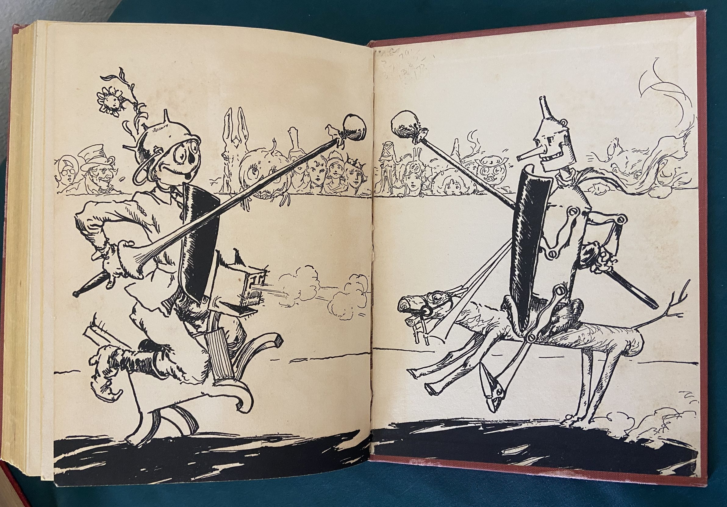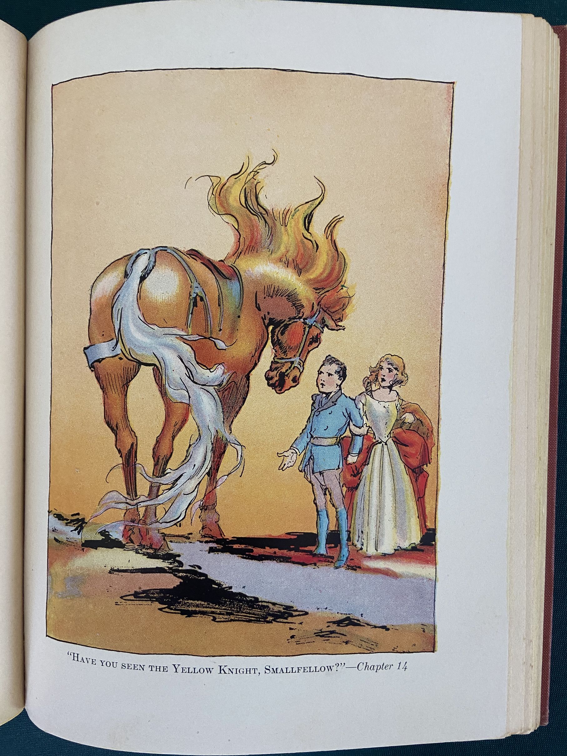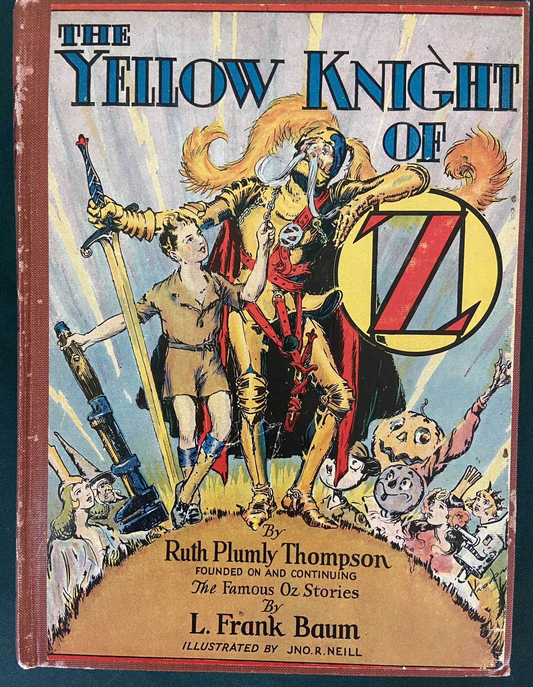 Here is a nice copy of “The Yellow Knight of Oz”, one of the harder to find and thus more desirable vintage Oz titles. Written by Ruth Plumly Thompson, successor to L. Frank Baum. Copyright 1930 by Reilly & Lee, this is a first edition with 12 fabulous color plates by John R. Neill. Also with illustrated endpapers and in the “A” binding state with boldface “Reilly & Lee” on spine (Book Collector’s Guide to L Frank Baum). Brick red cloth.