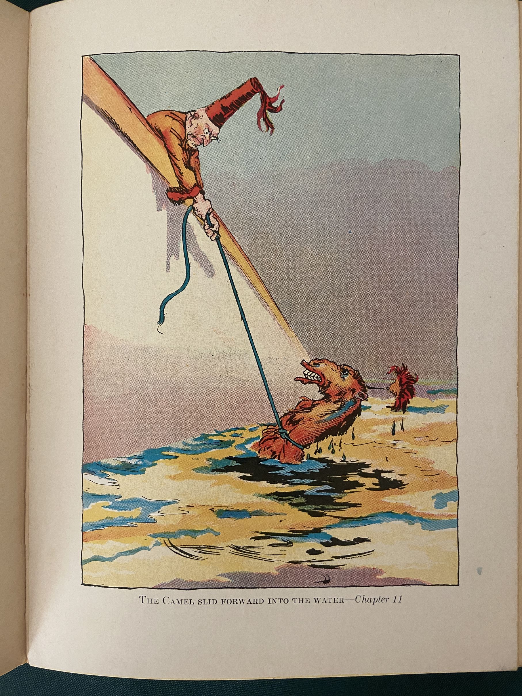 The book is in very good condition overall. The exterior cover plate is quite nice, with a little wear at lower corner, and the spine and rear cover are quite clean. Inside, both hinges are intact, with some tanning to endpapers. There is a name on the Book Belongs To page. All 13 color plates are present and in very good overall condition. They have eyepopping bright colors; I love the plates in this book. The pages are generally nice condition also, with base of text block dirty on lower corner. The dust jacket is very good with minor edge wear and tear.